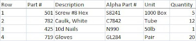 Next combine quantities of lines with the same part number into a single line. Delete the duplicate lines. Post without an error!